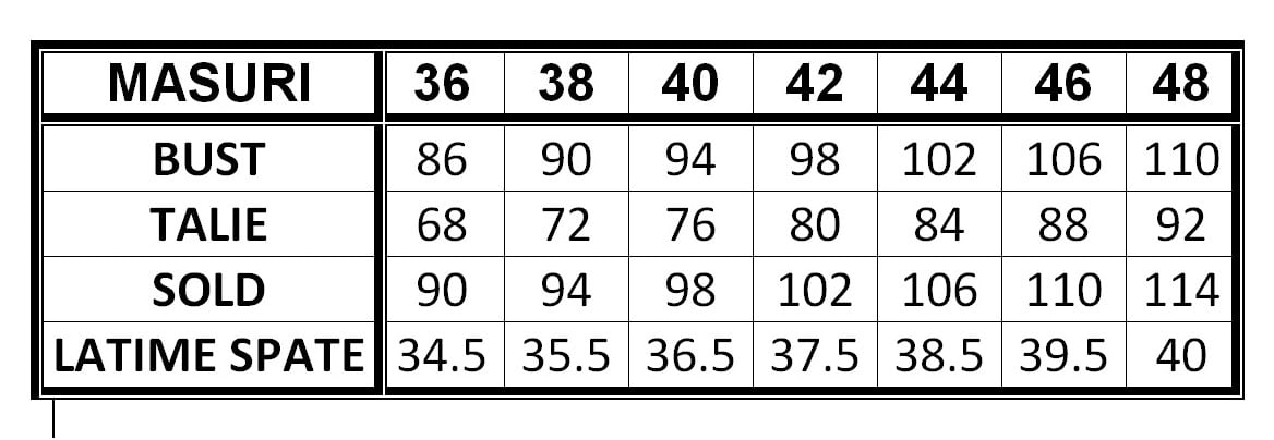 Vă rugăm să verificați tabelul de mărimi pentru a alege mărimea corectă!