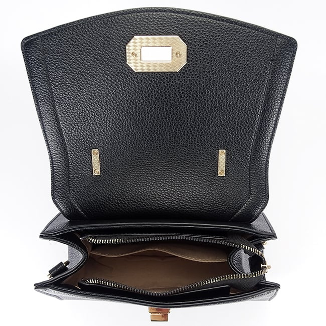 Poate fi purtată cu mânerul scurt pentru un look clasic sau pe umăr, datorită curelei detașabile și reglabile. Interiorul bine compartimentat oferă suficient spațiu pentru telefon, portofel, agendă și alte accesorii esențiale, transformând-o în partenerul perfect pentru birou sau întâlnirile de zi cu zi.