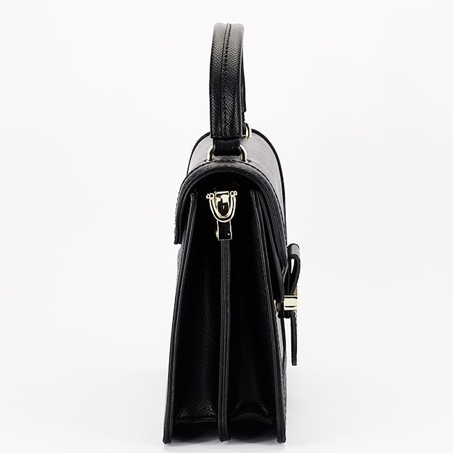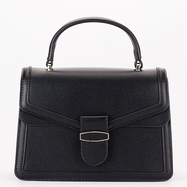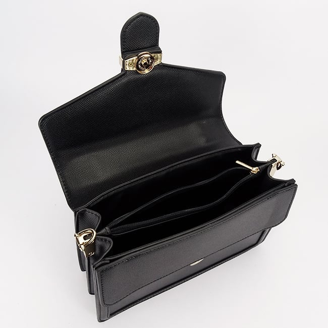 Completează-ți ținuta cu eleganță și rafinament cu această geantă Flora&Co Paris. Realizată din piele ecologică de înaltă calitate, geanta impresionează prin designul său clasic și finisajele atent lucrate. Culoarea neagră și detaliile metalice aurii oferă un aspect sofisticat, potrivit atât pentru birou, cât și pentru evenimente speciale.