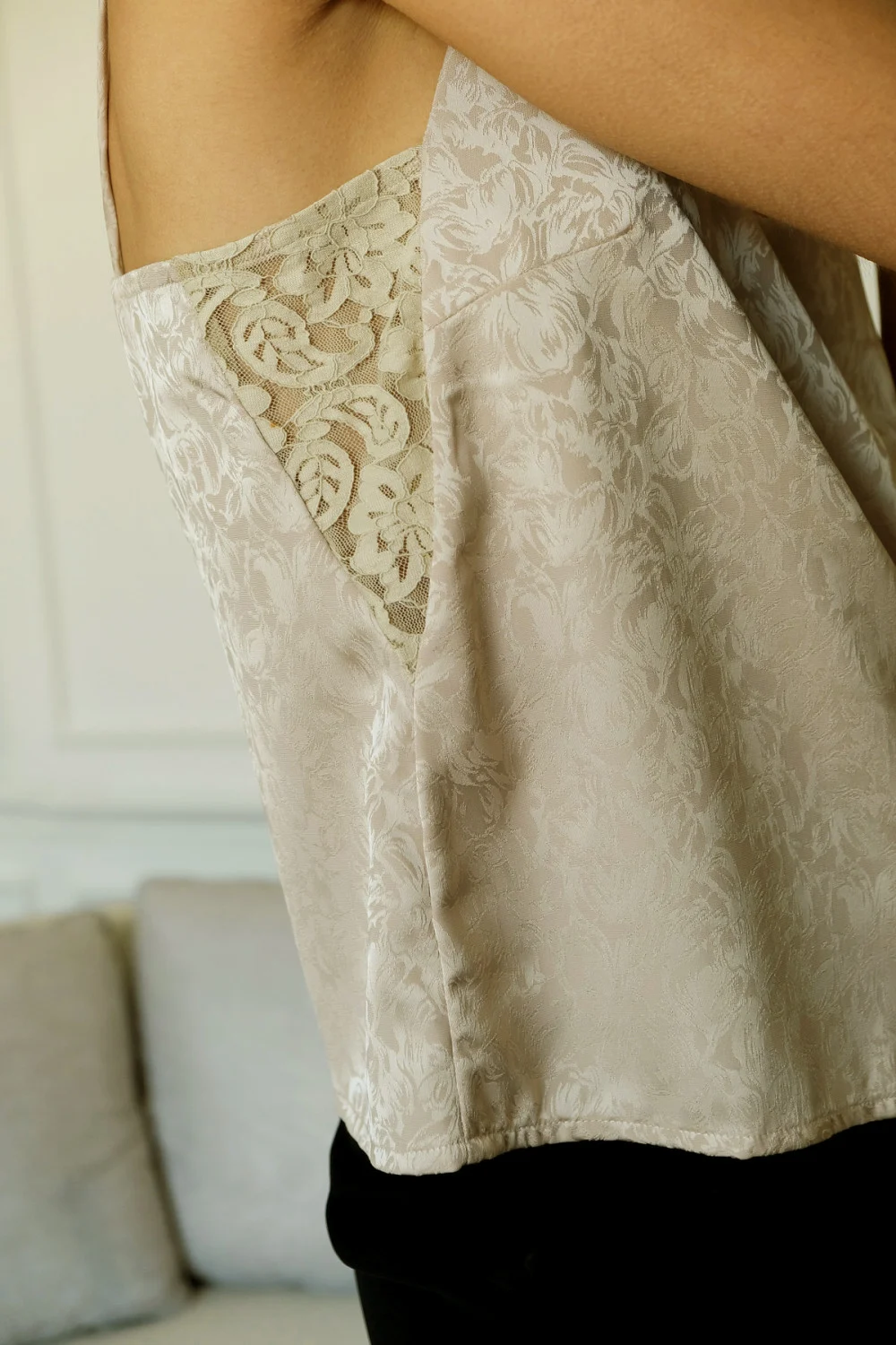 • Insertii de dantale in "V" in partile laterale,